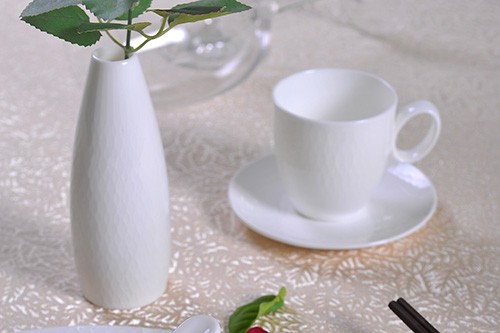 骨瓷透出白光,細(xì)膩浮雕映于釉面之上,仿佛塞納河上的波光粼粼,